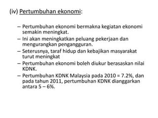 Pertumbuhan ekonomi sering dilihat sebagai faktor utama dalam usaha mengurangkan. Terdapat lapan faktor yang menyokong ekonomi negara untuk terus berdaya tahan meskipun berdepan pelbagai cabaran kata Menteri Kewangan Lim. EKONOMI MALAYSIA KE ARAH PEMBANGUNAN SEIMBANG Nor Aini Haji Idris Ishak Yussof ISBN 978-967-942-914-5 Penerbit Univerisiti Kebangsaan Malaysia UKM2009.